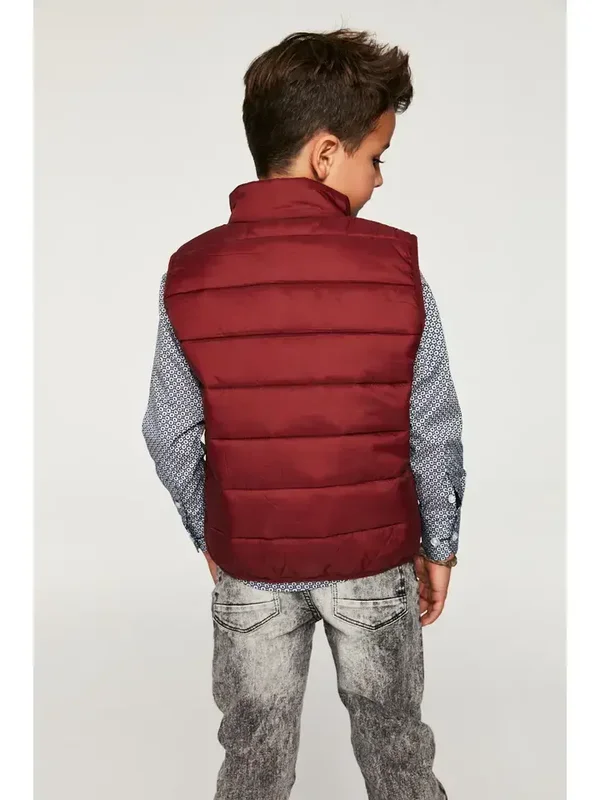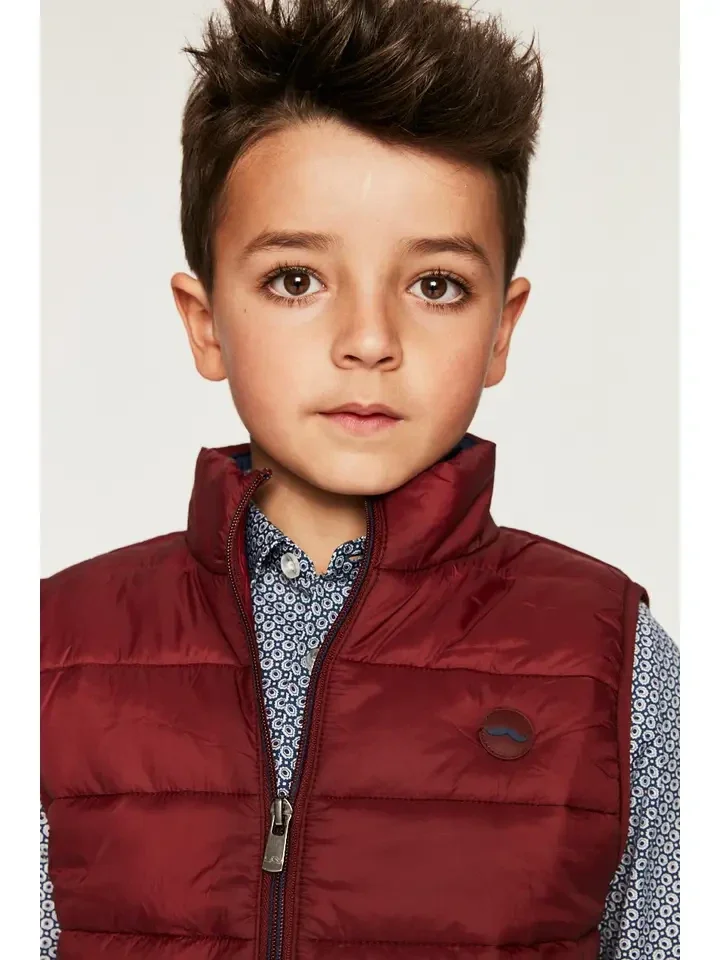 Gewatteerd nylon kinderbodywarmer met opstaande kraag. Tweekleurige ritssluiting, zijzakken met klep en rubberen logo op de borst. Gevoerd interieur. Ideaal voor tussenseizoenen.