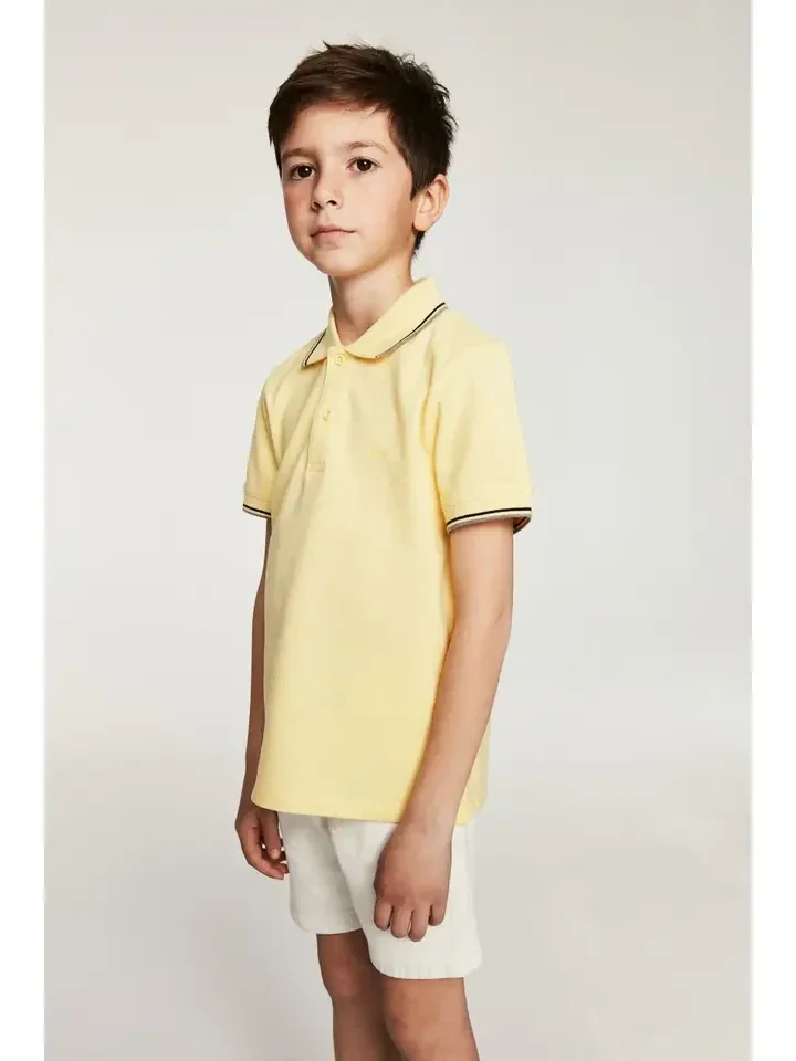 Basis poloshirt voor jongens gemaakt van katoenen piqué. Kraag met contrasterende strepen, knoopsluiting met twee knope