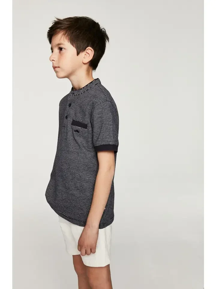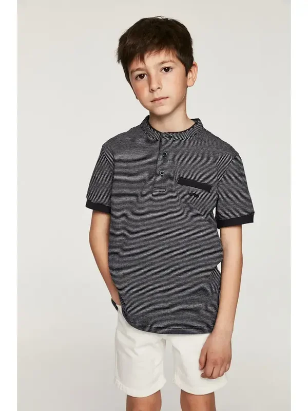 Tweekleurig katoenen poloshirt voor jongens met contrasterende kraag en knoopsluiting met twee knopen. Casual ontwerp